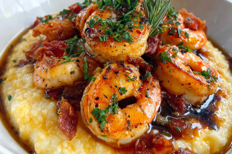 To serve, spoon the creamy grits into a bowl and top with the shrimp and sauce. Garnish with freshly chopped parsley. Presentation matters, and this dish is visually appealing with its vibrant colors and textures, enhancing the meal experience.